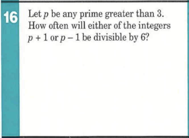 Thus, for EVERY prime p > 3, either p-1 or p+1 must be divisible by 6.