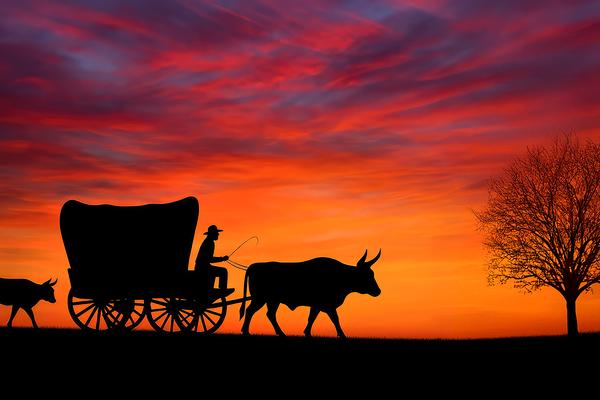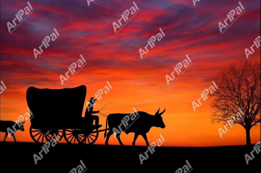 NEW ART with Free Shipping! - Western Sunset with Covered Wagon and Steer https://buff.ly/i4OrO8j