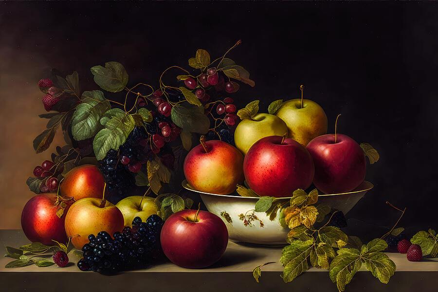 Rich, Rustic, and Timeless! “Harvest Apples” brings old-world warmth Americana to your walls.