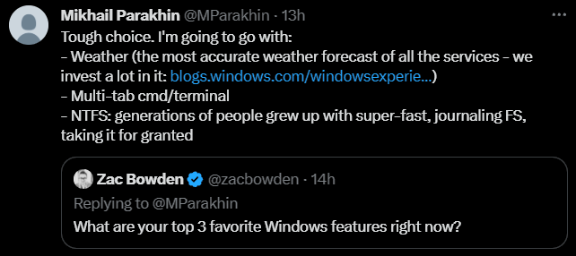 no big deal, just the head of #Windows saying that the #WindowsTerminal is one of his top-3 features in Windows